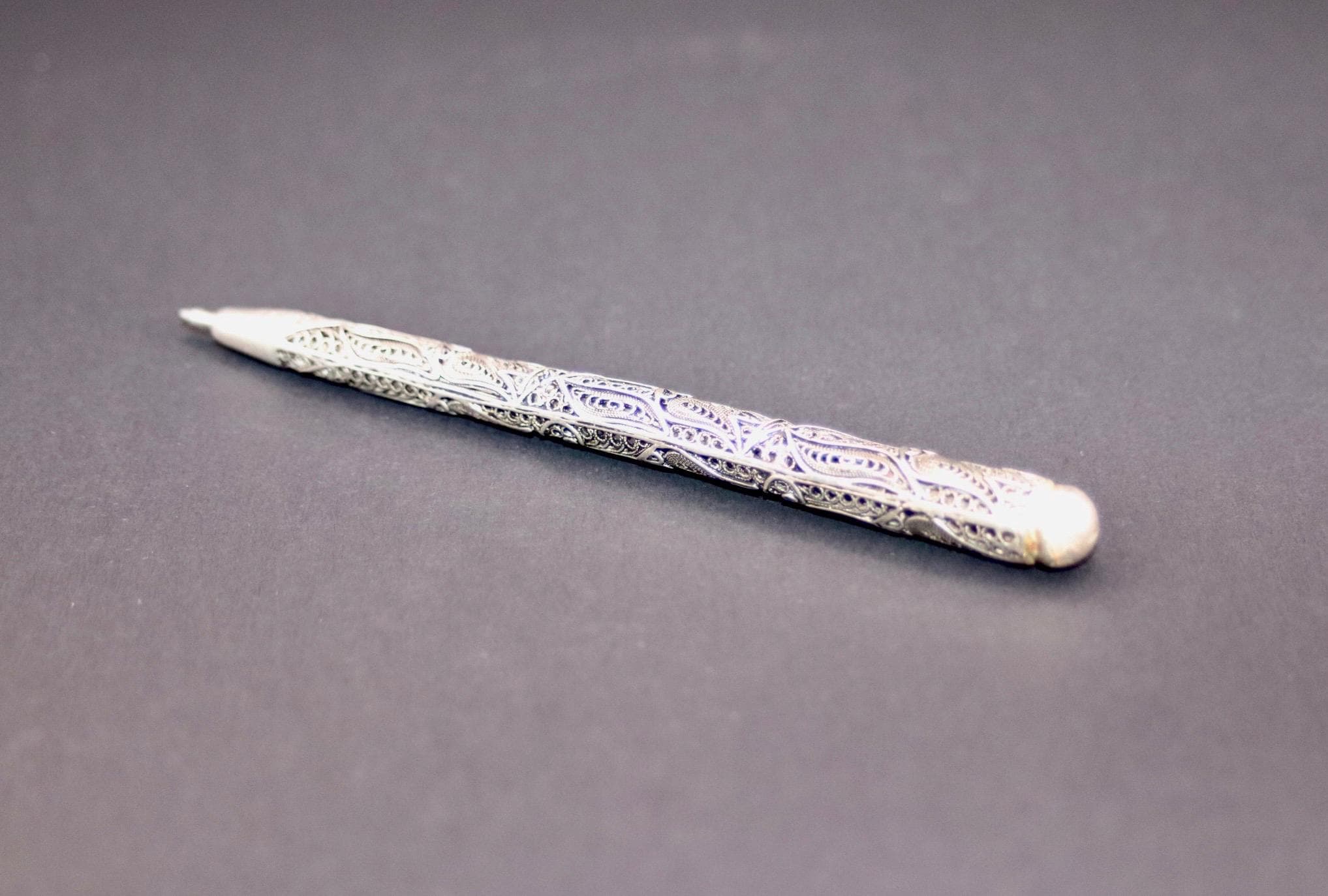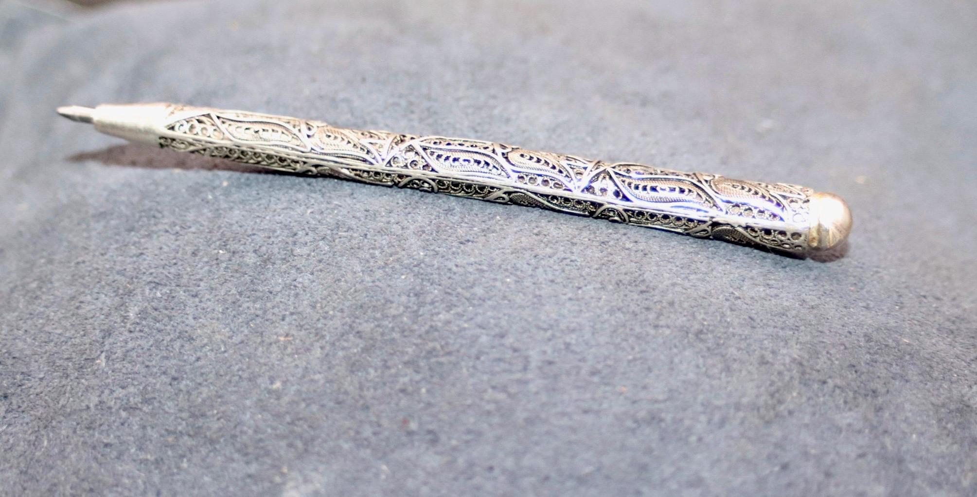 Elevate your writing experience with this exquisite handmade antique silver filigree pen — a true fusion of artistry and elegance. Crafted with intricate, centuries-old techniques, each pen is a one-of-a-kind masterpiece, offering timeless beauty and old-world charm. Whether you’re signing a contract or gifting a collector, this pen speaks volumes about taste, tradition, and sophistication.