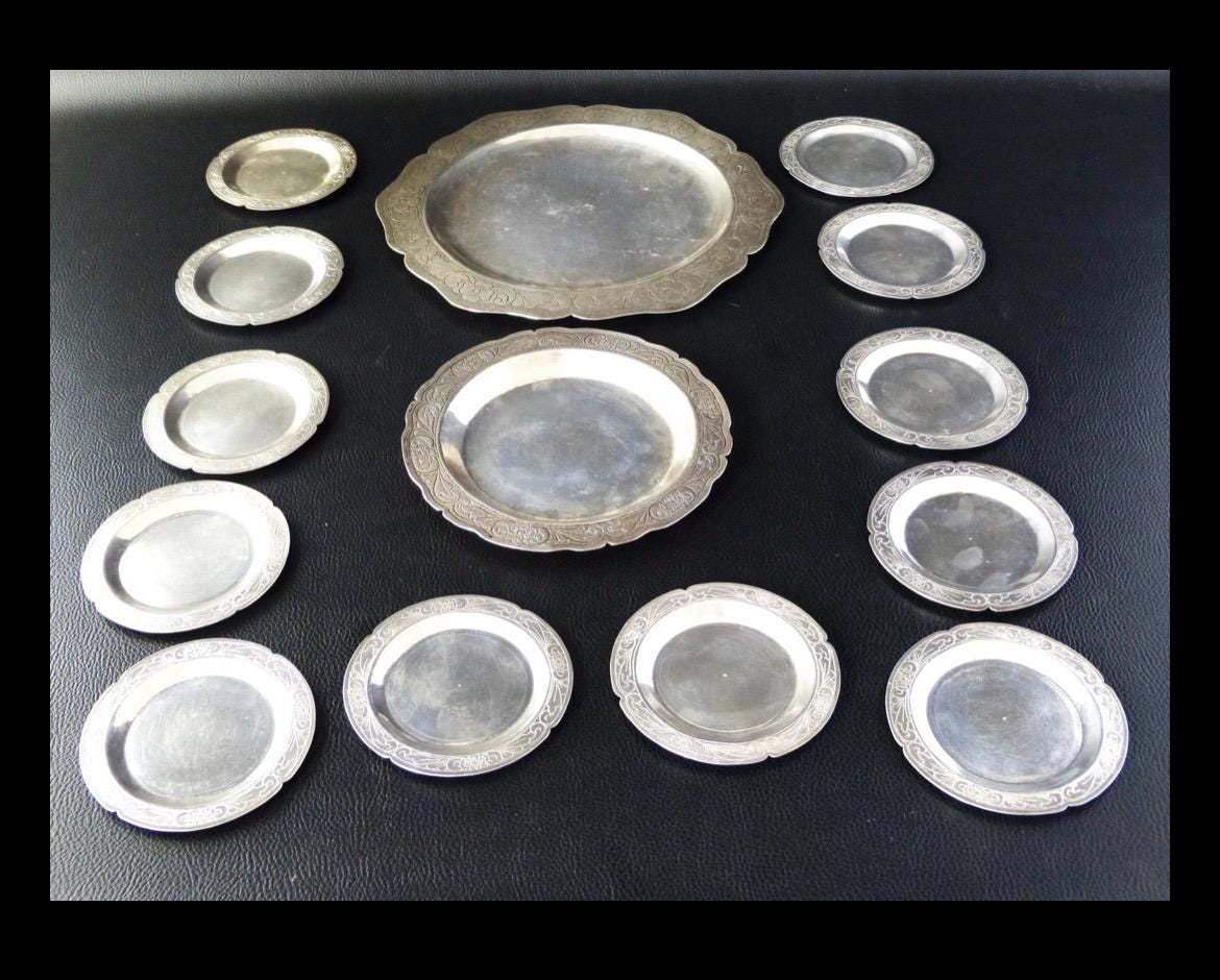 Dessert plate set, 14-piece, .900 silver, Welsch - Lima/Peru - mid-20th century