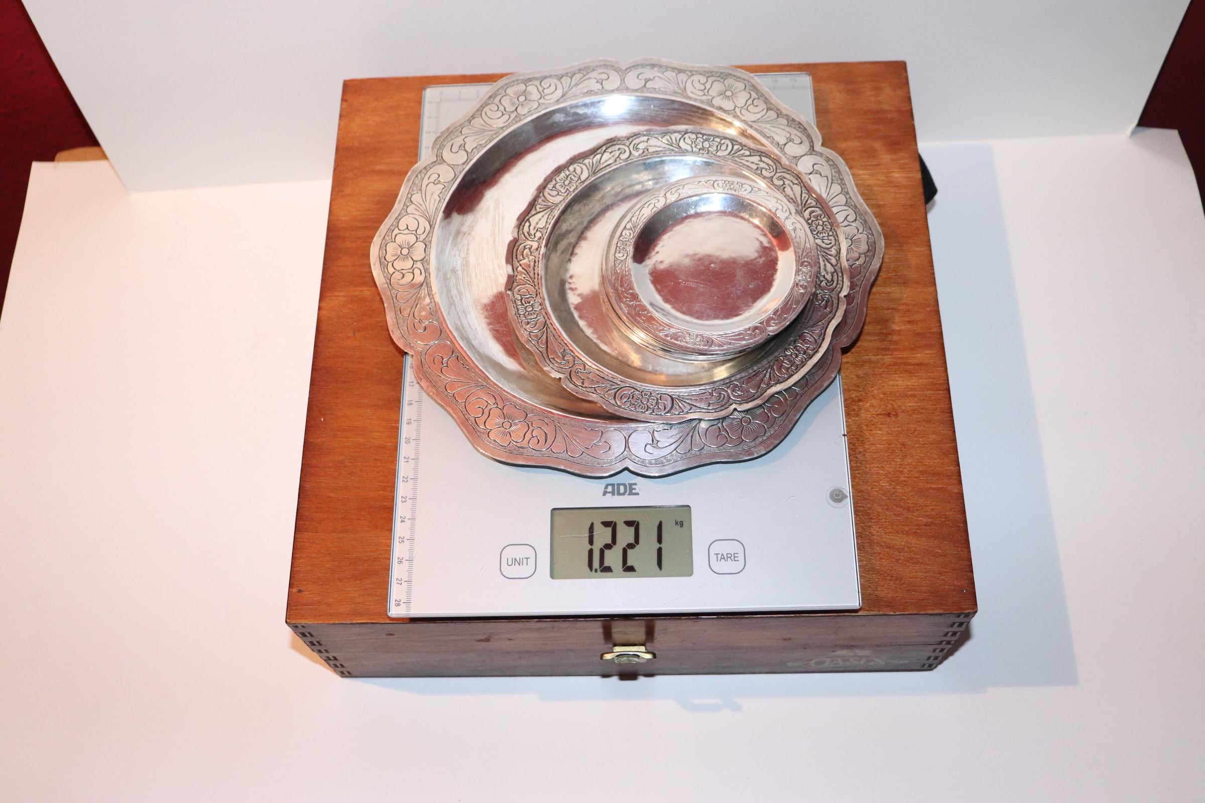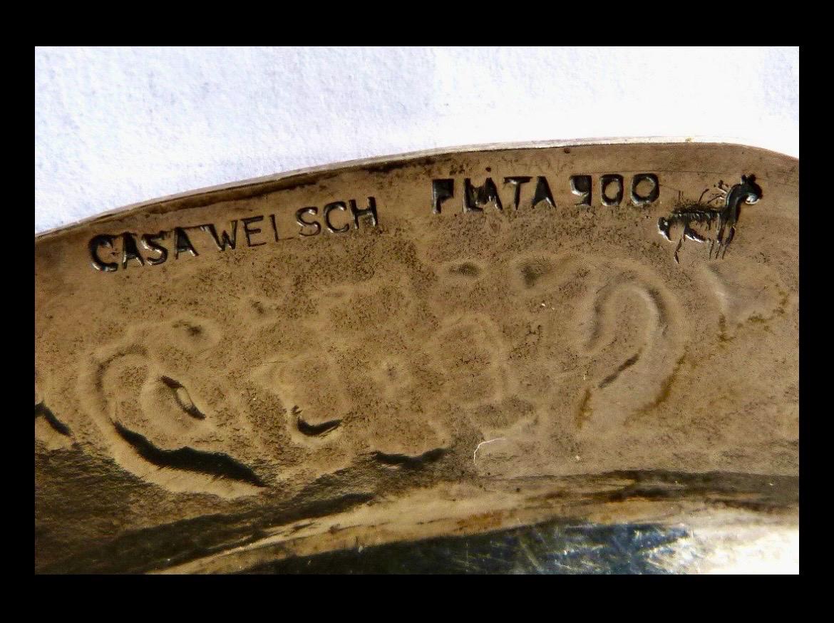 Small serving plate: diameter 17cm, height 1cm, stamped, Casa Welsch Plata 900.