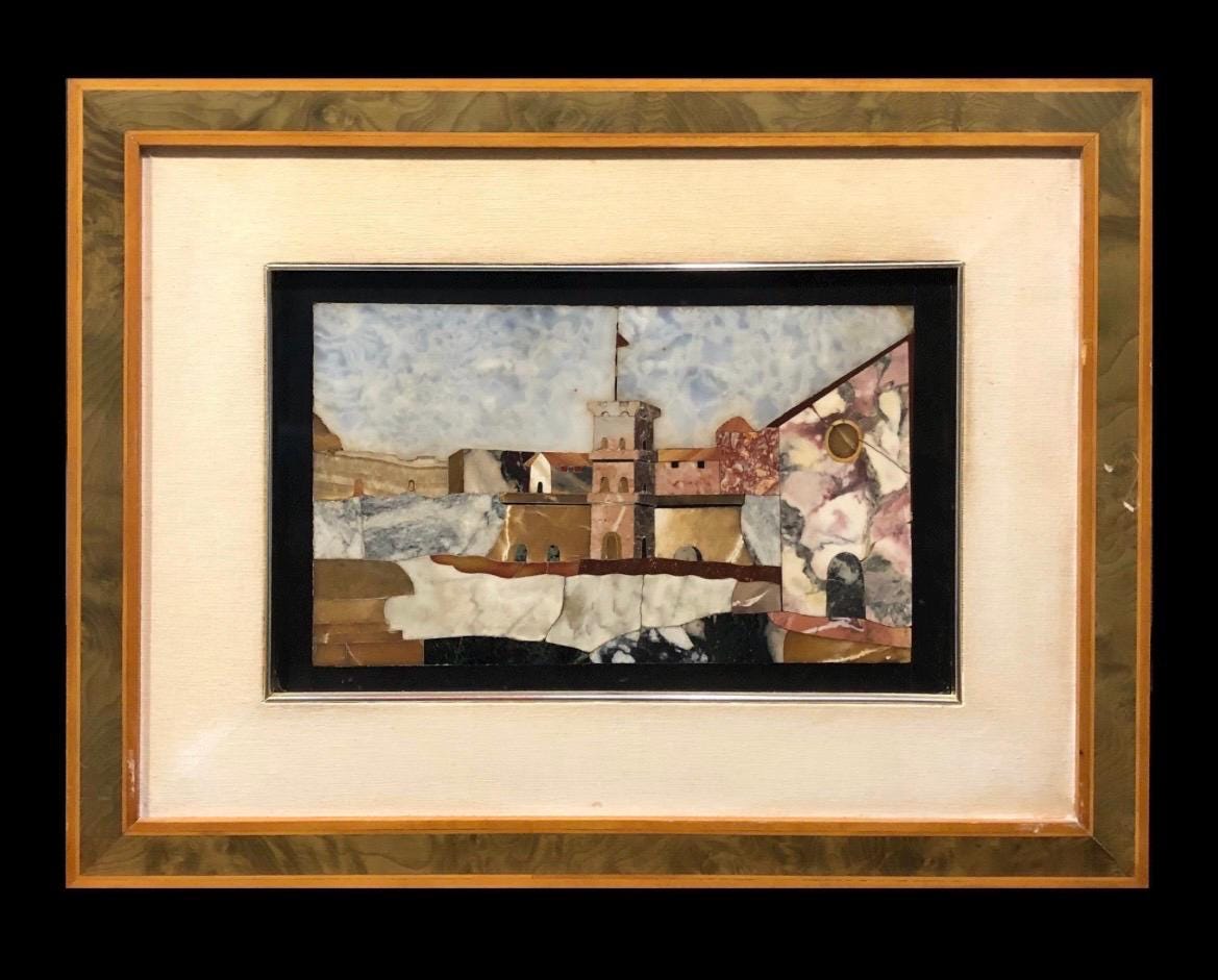 Italian. 1880–1890 Landscape pietre dure (also called pietra dura) hard stone inlay signed“T. Monanni”,
